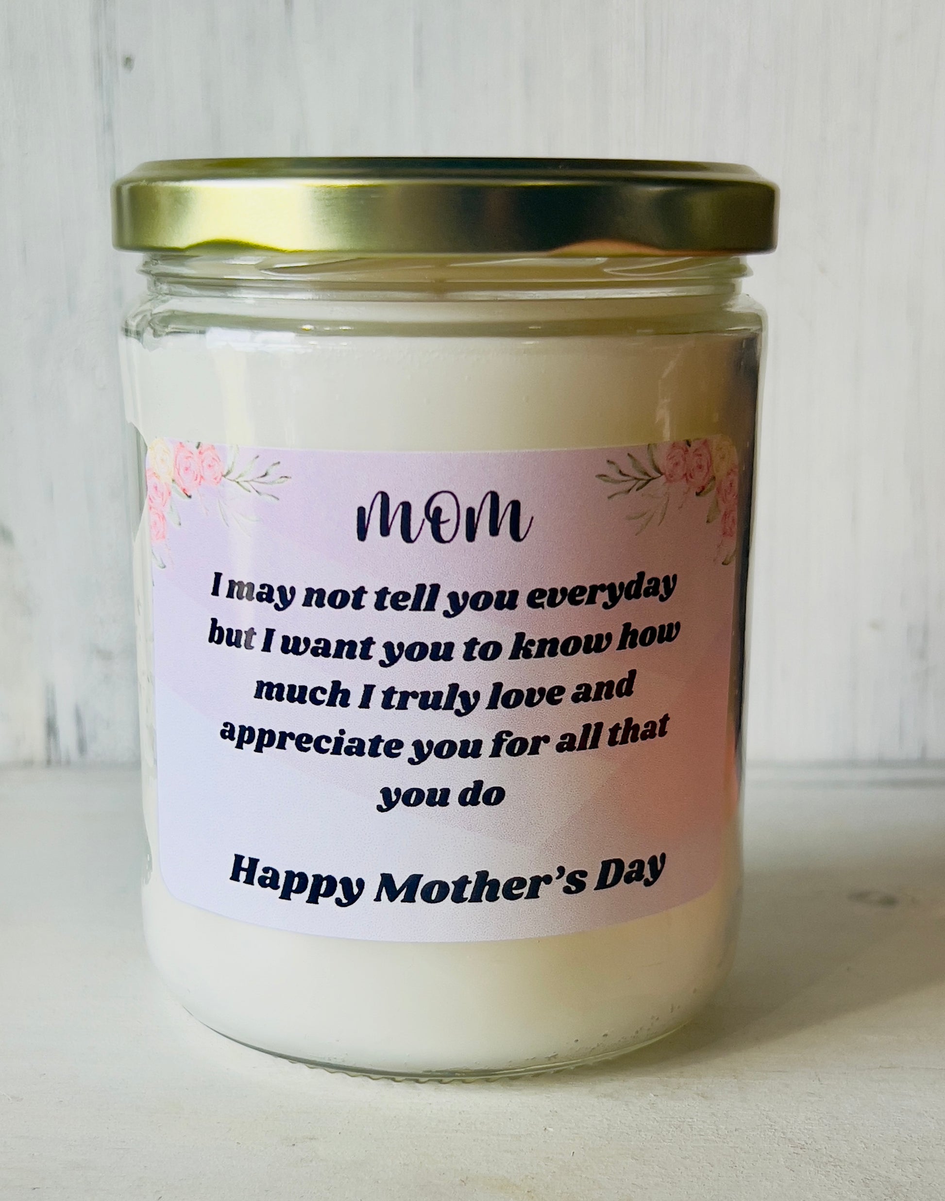 Funny and sweet candles for Mom. Pick your phrase and scent. This candle is 12 ounces.